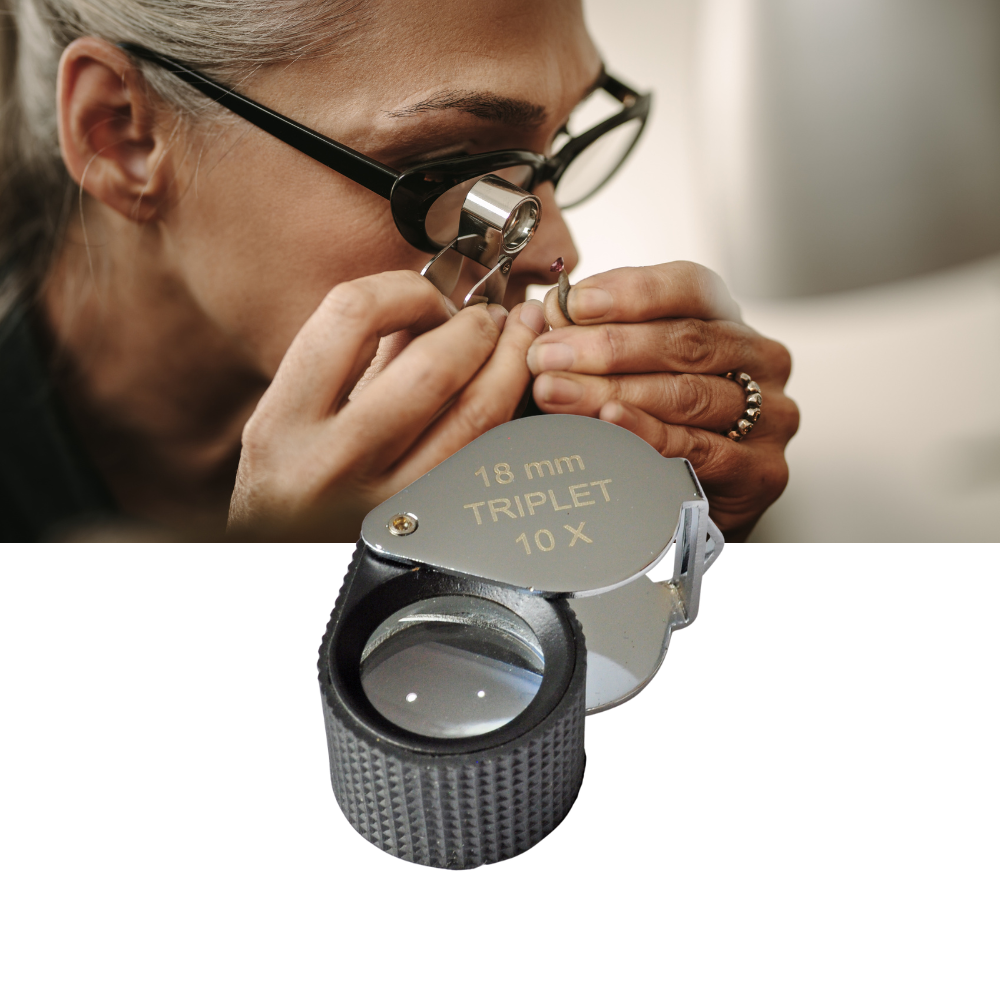 - Aumento de 10X: Con un aumento de 10X, la lupa Triplet te permite examinar minuciosamente pequeñas piezas como joyas, relojes y piedras preciosas. No se te escapará ningún detalle gracias a su potente capacidad de ampliación.