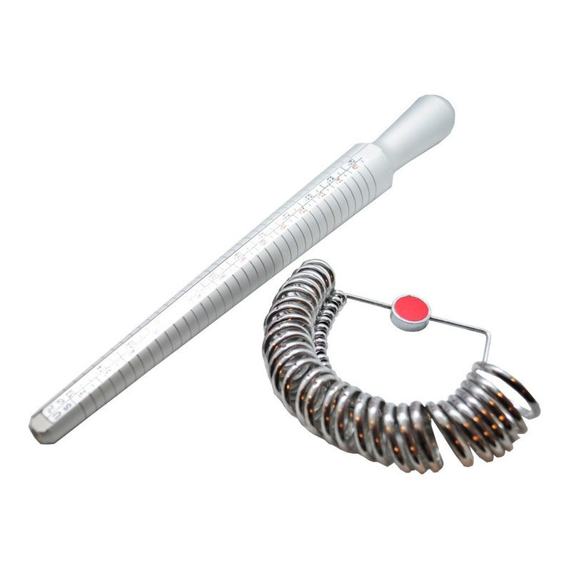 Juego Medidor De Anillos De Aluminio Y Anillero Media Caña