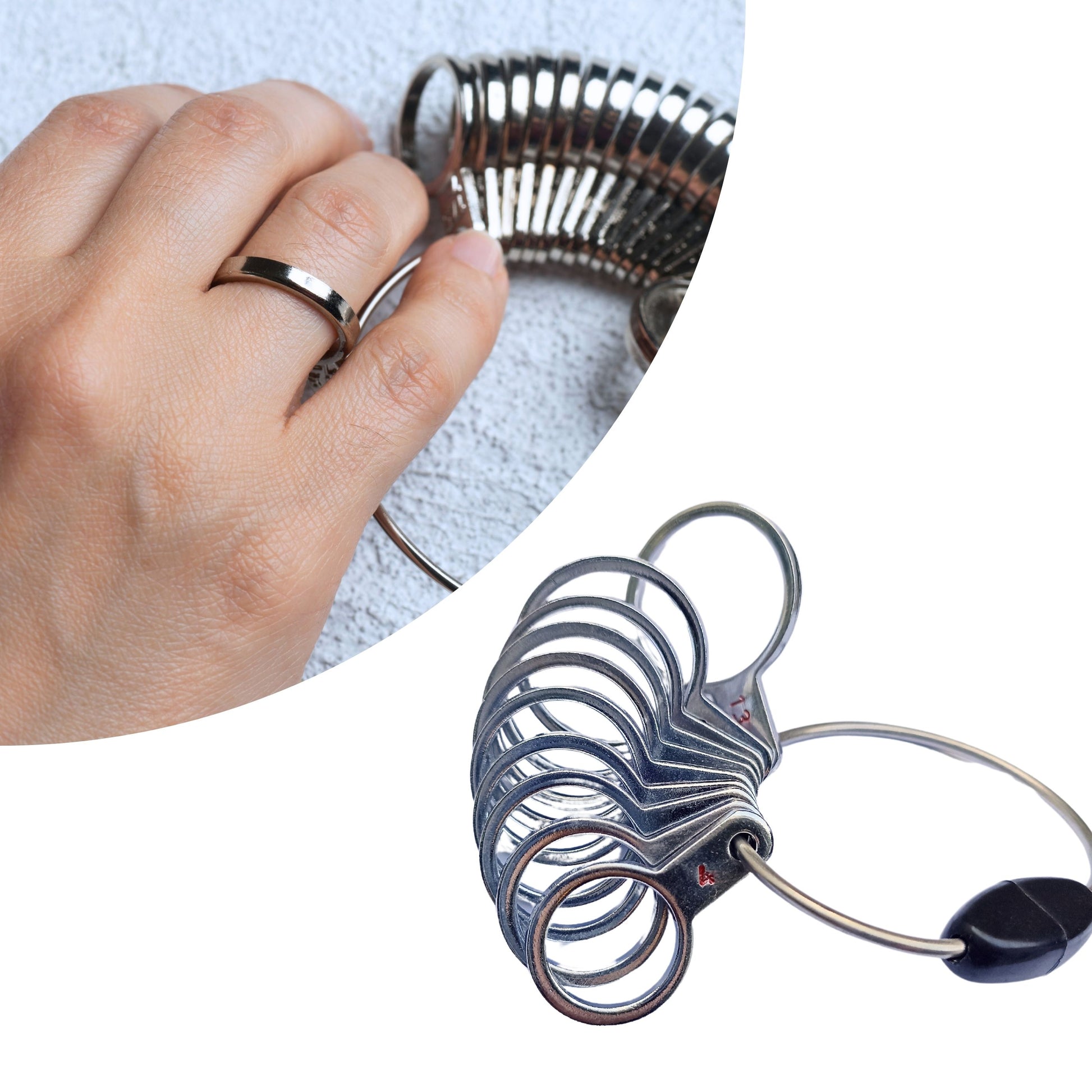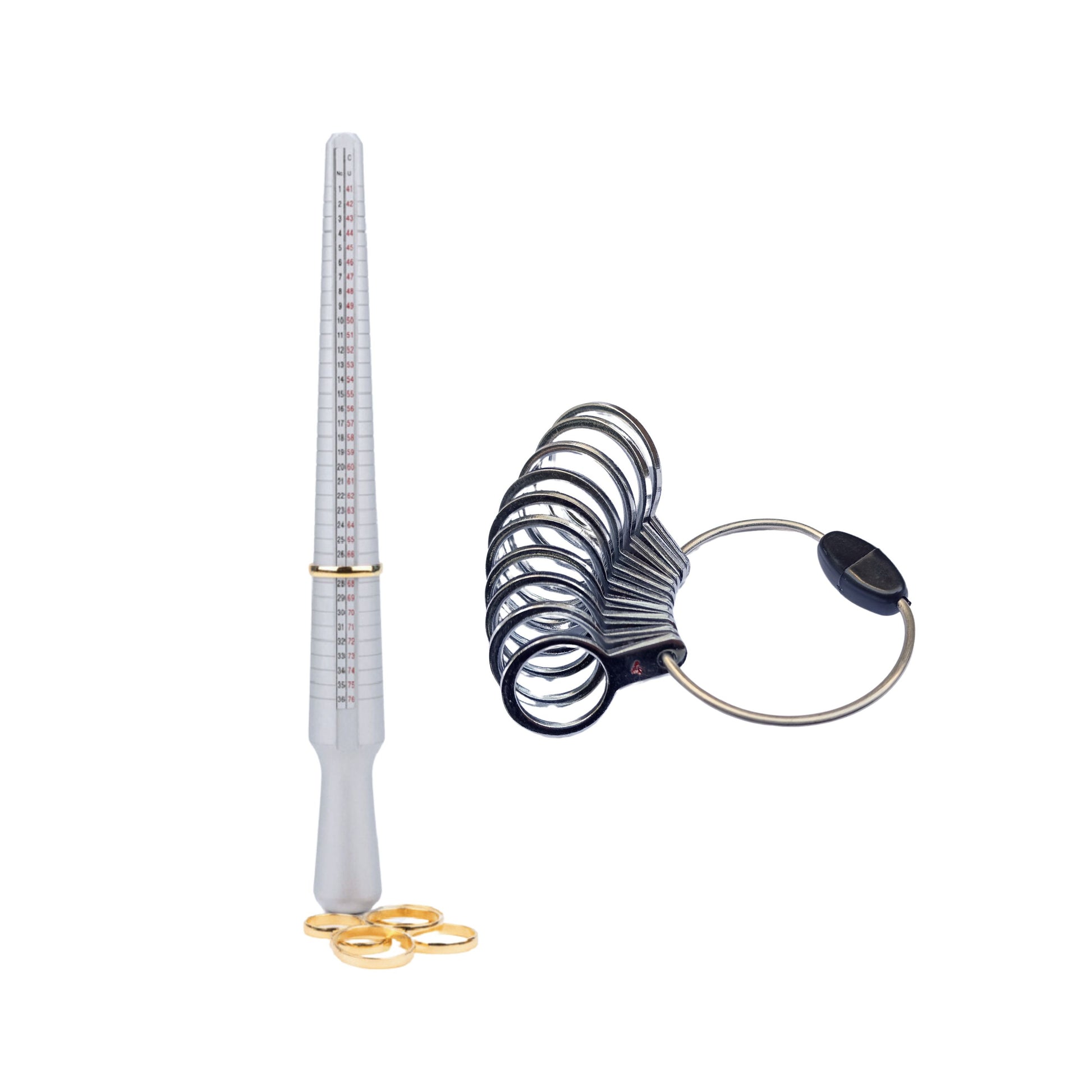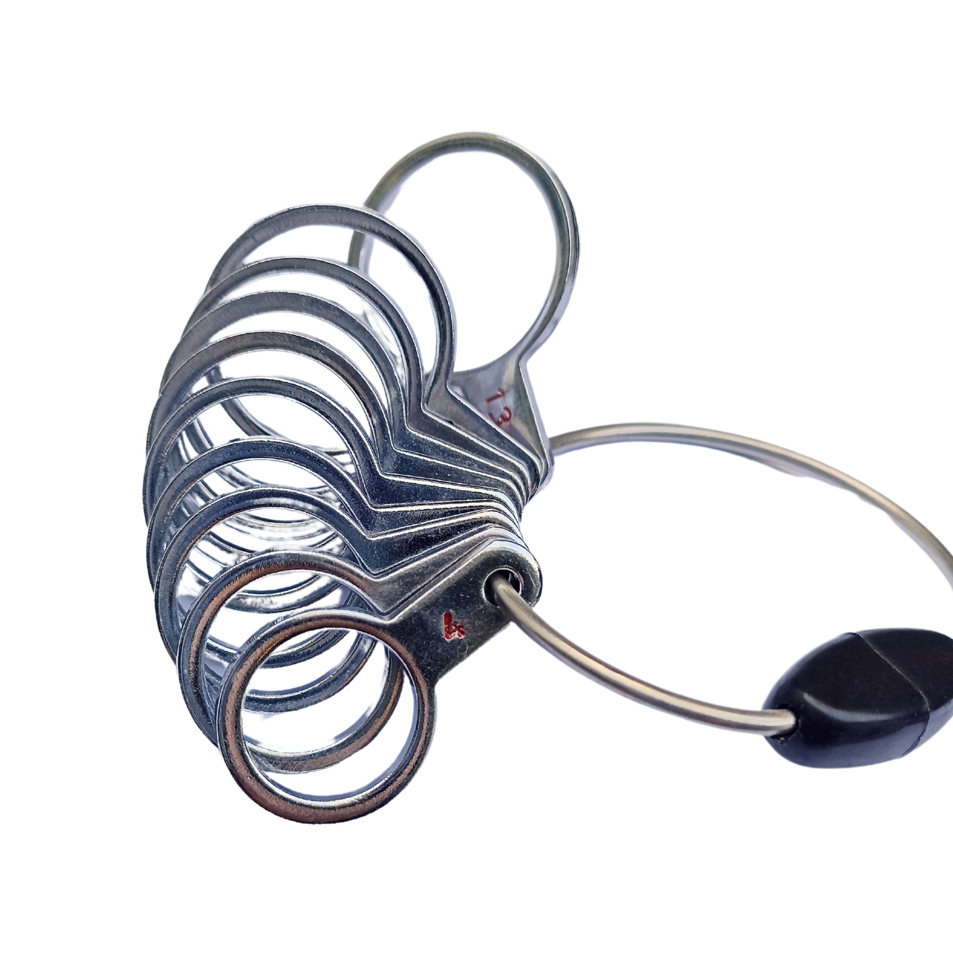 - Kit completo para medir y modelar anillos: Este completo kit es perfecto para la medición y modelado de anillos de aluminio. Incluye 2 piezas: un medidor de anillos plano del tamaño 4 al 13 y un anillero de acero inoxidable. ¡Todo lo que necesitas para crear y ajustar tus propios anillos!