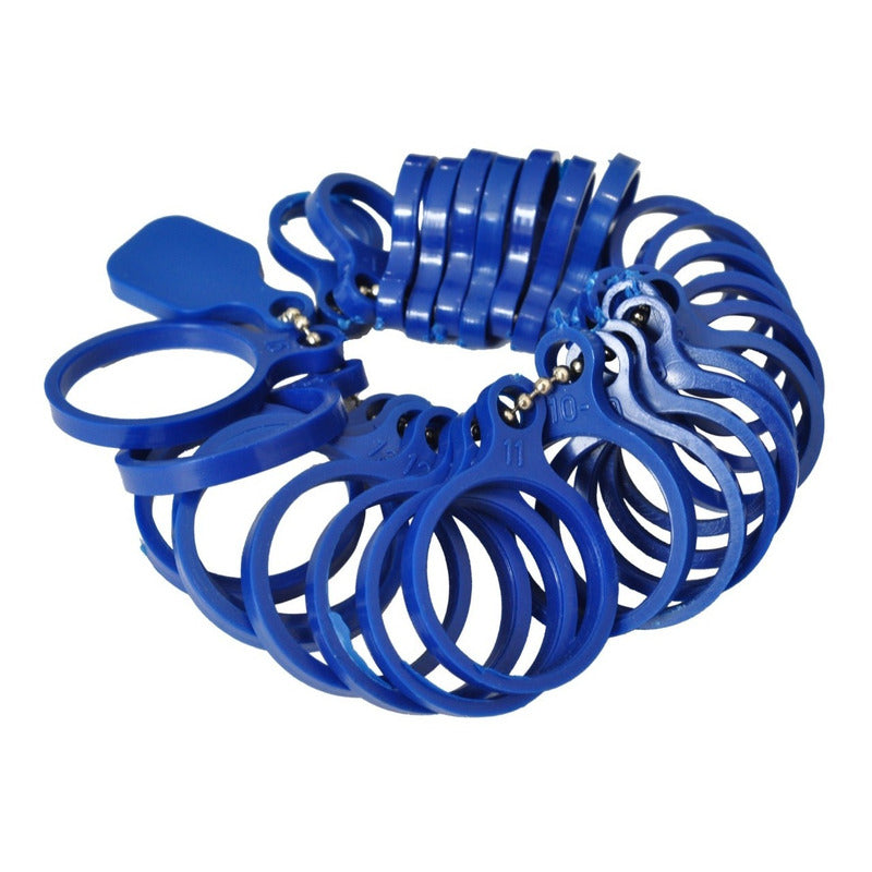 Juego de Medidos de Anillos de plástico del 1-16 y Anillero de plástico Características:- El medidor de anillos es ligero, fácil de manejar.