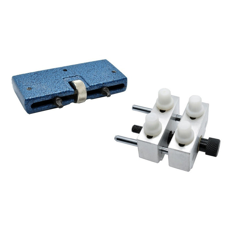 Kit de Sujeta cajas de Aluminio para Relojes con Mordazas + Llave de 2 puntas para abrir relojes