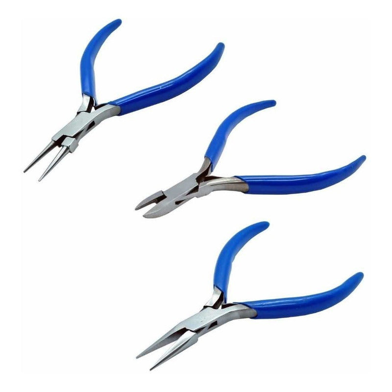 Kit de 3 pinzas para Bisuteria y Joyeria. Incluye: Pinza de Punta Media Caña 115mm Pinza de Corte Lateral 115mm Pinza de Punta Redonda 115mm