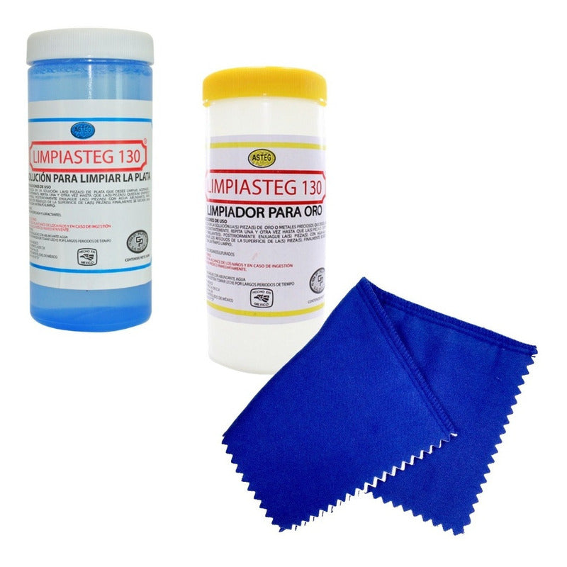 - Limpiador Líquido Limpiasteg: Nuestro kit incluye un Limpiador Líquido Limpiasteg de 240 ml, diseñado específicamente para limpiar joyas de plata y oro. Este limpiador es eficaz para eliminar la suciedad, el polvo y los residuos, y deja tus joyas brillantes y como nuevas. Su fórmula especializada garantiza resultados óptimos sin dañar el metal.