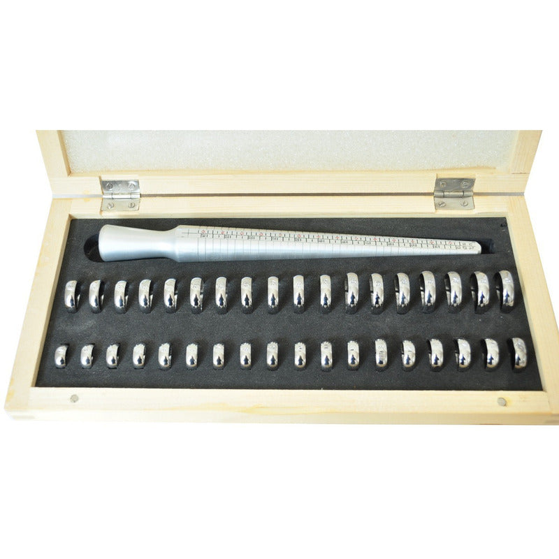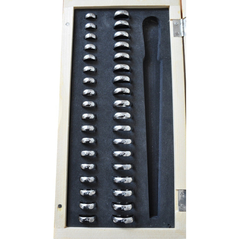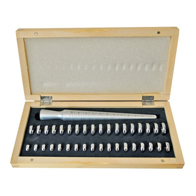 Juego de Medidor de Anillos y 36 Argollas en estuche de madera