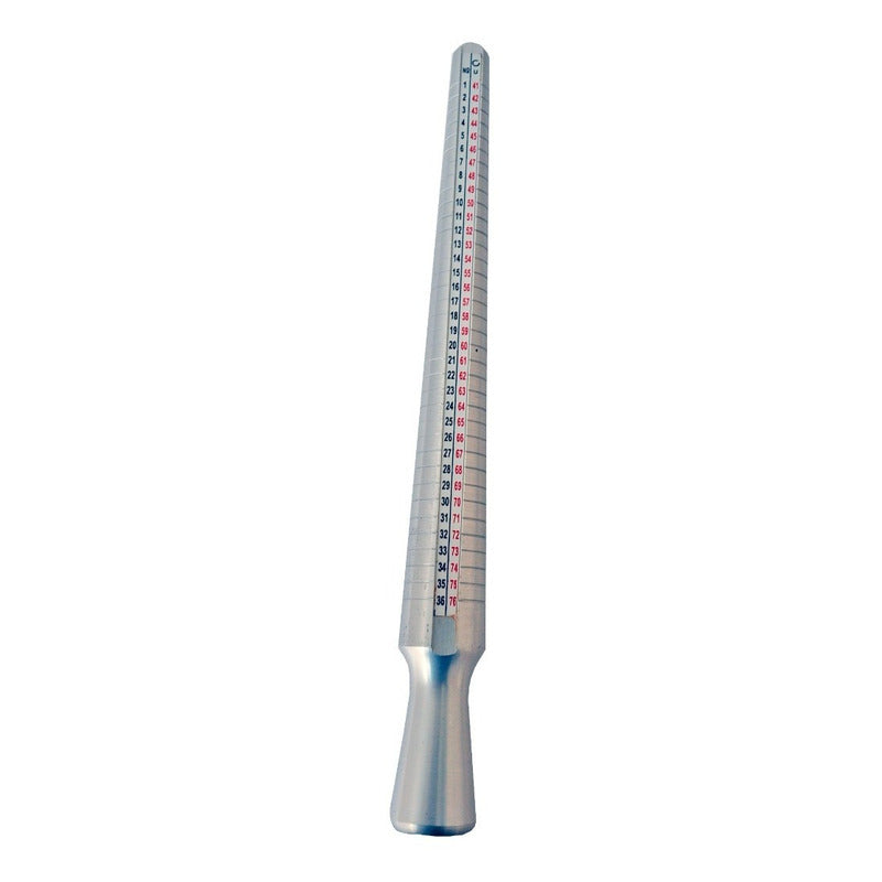 - Cada anillo está grabado con su tamaño único de dedo europeo; de 1 a 36 (incluyendo medias tallas).