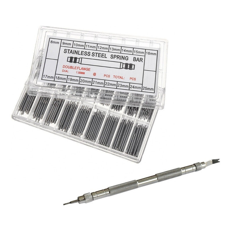 - 360 pernos de resorte de reloj en 18 tamaños diferentes, y cada tamaño incluye 20 piezas.
