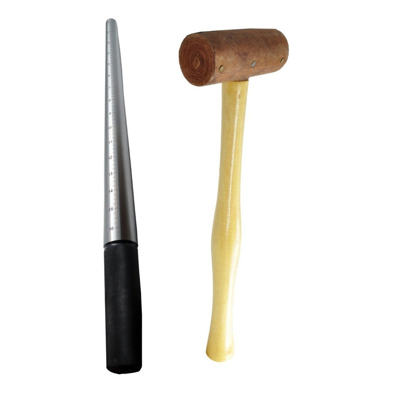 Kit Joyería Lastra de Acero y Martillo Carnaza para Moldear Lastra de Acero KAP Tools con Graduación del 1 al 16 con mango en color negro. Ideal para modificar la forma de los anillos después de la soldadura, se pueden utilizar para modelar y remodelar metales Mazo de Carnaza 1.5" 3.8 cm