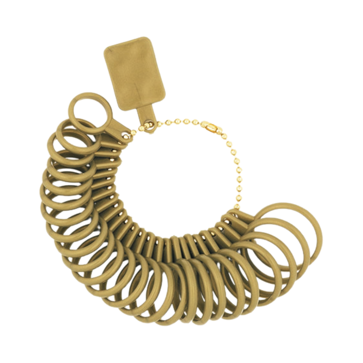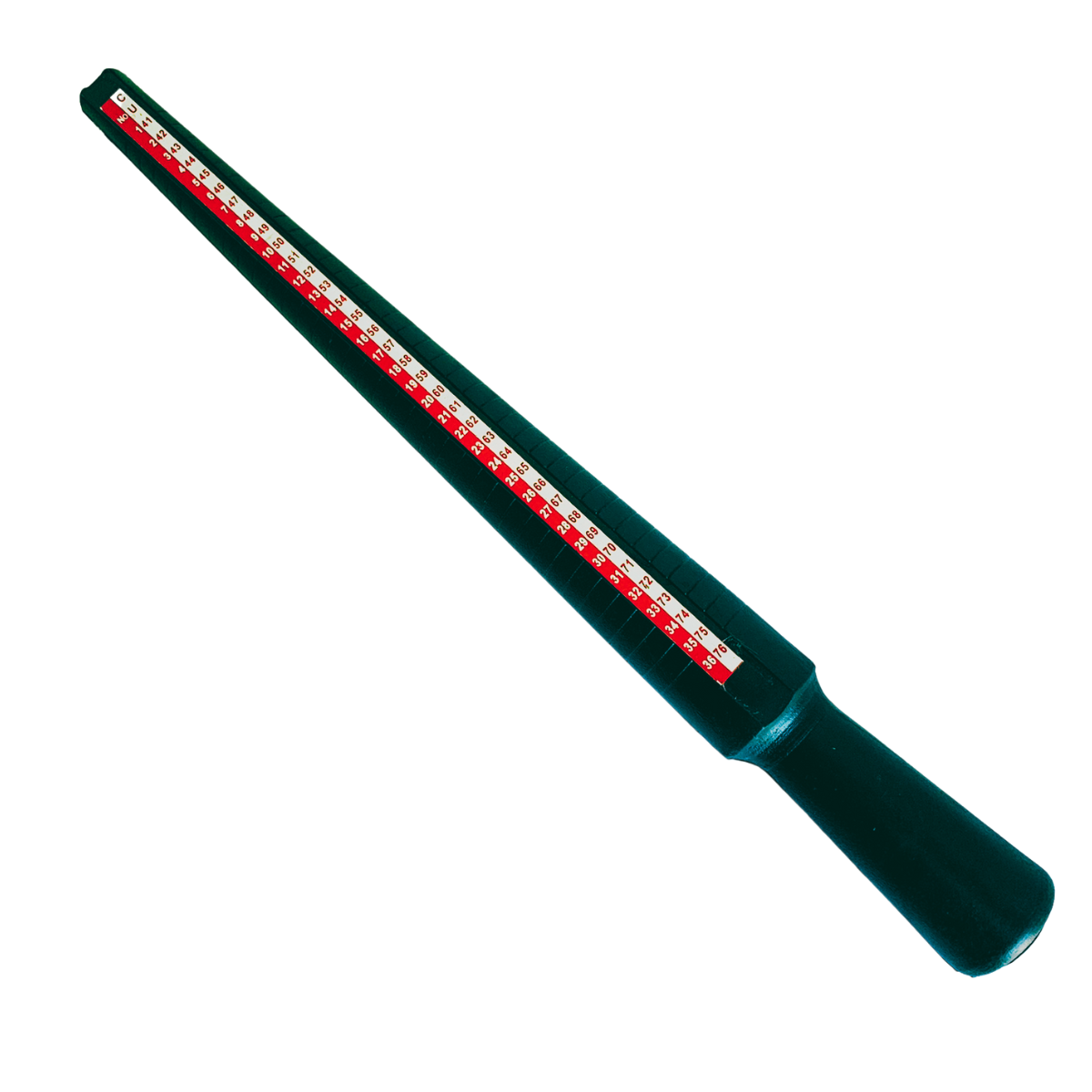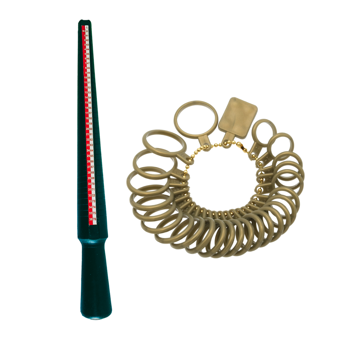 - Simplemente deslice el anillo en el palo hasta que toque la escala para revelar el tamaño del anillo.