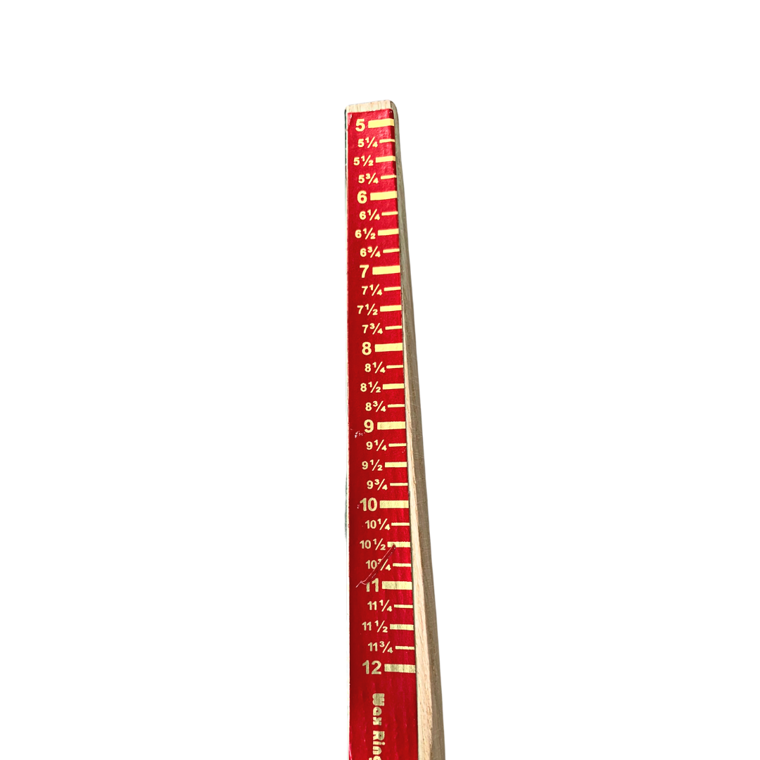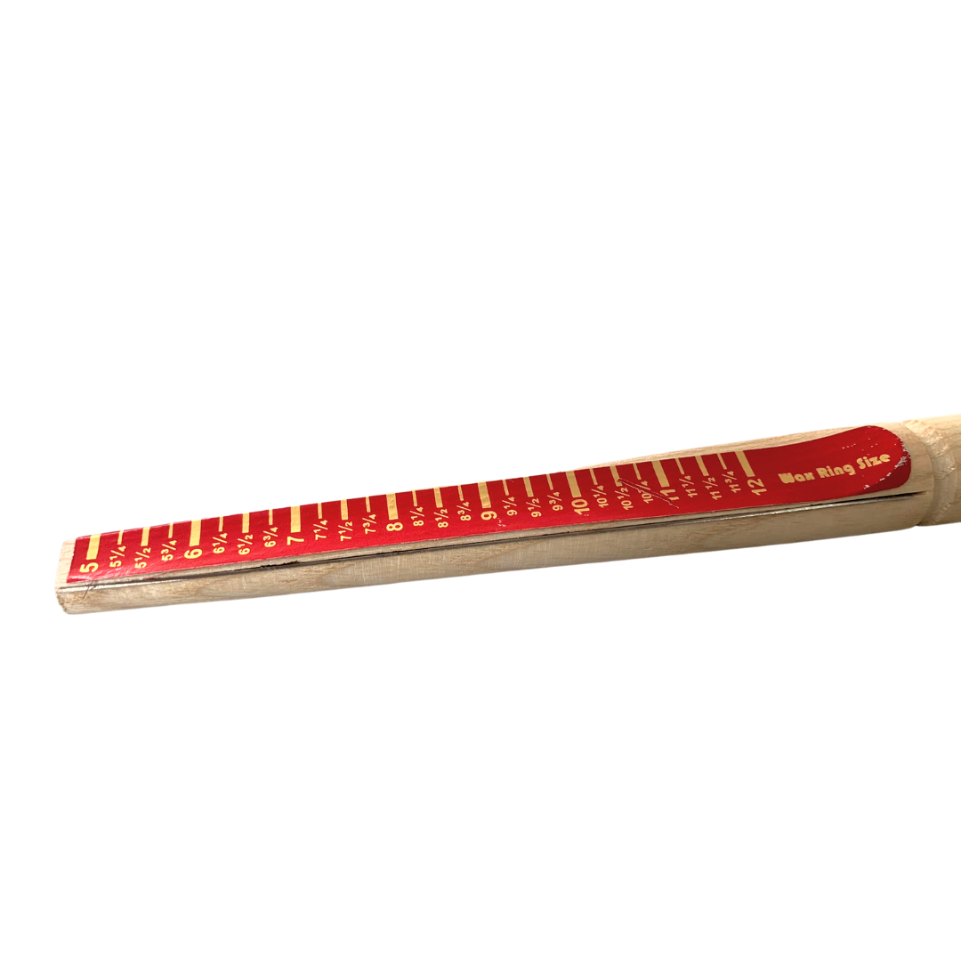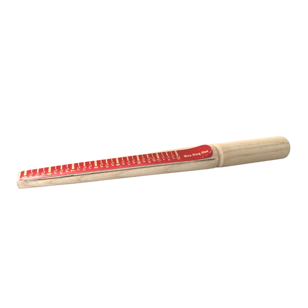 - El medidor de madera se utiliza para ampliar el diámetro del agujero de los modelos de anillos de cera al tamaño correcto del dedo.